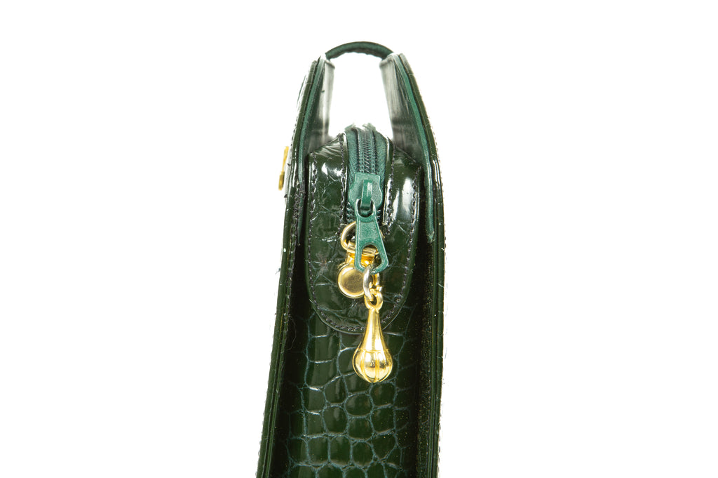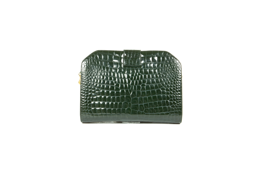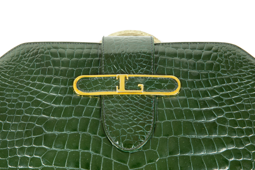 1970s Louise Fontaine Green Crocodile Clutch / Shoulder Bag