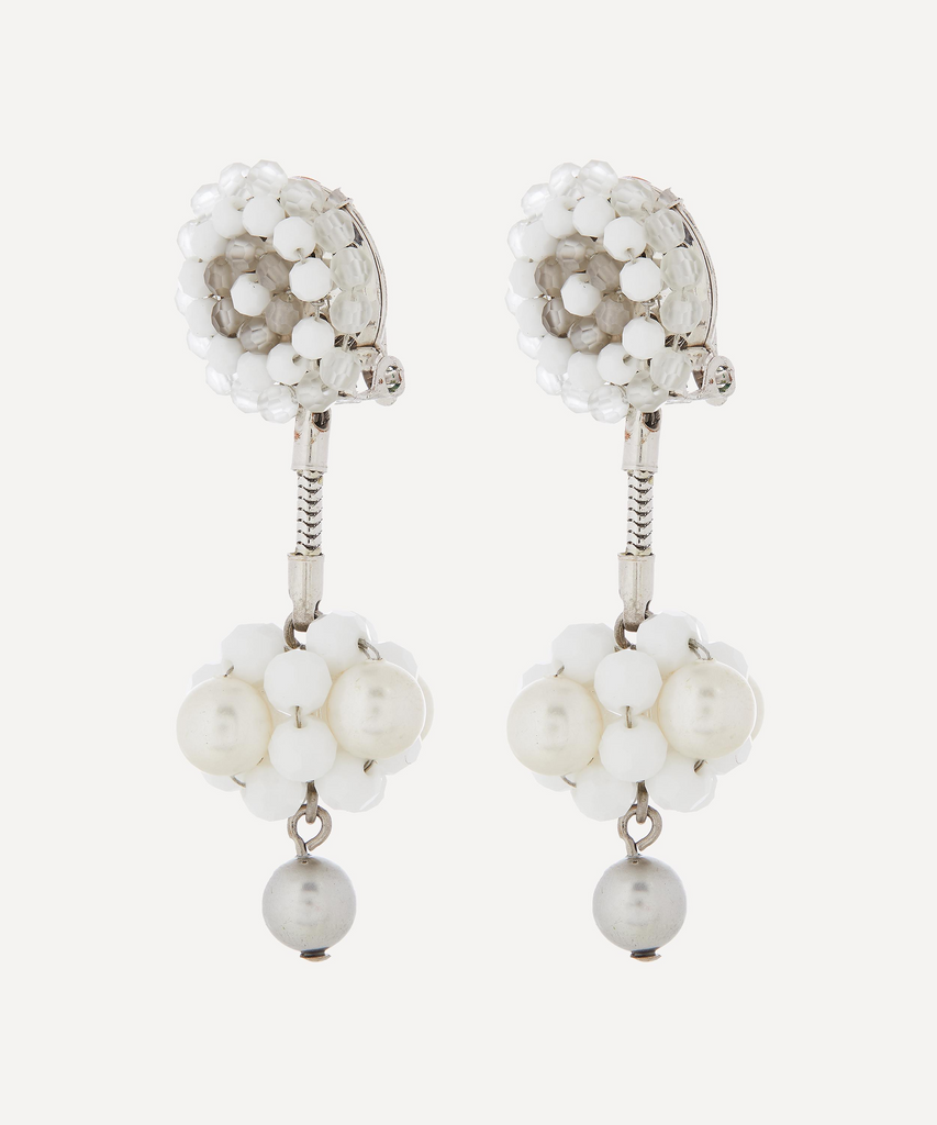 1990s Daniel Swarovski White Metal Faux Gemstone Clip-On Drop Earrings