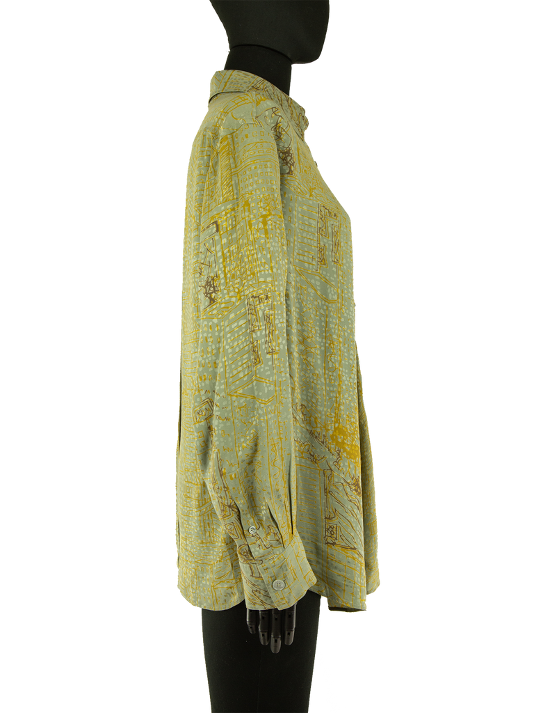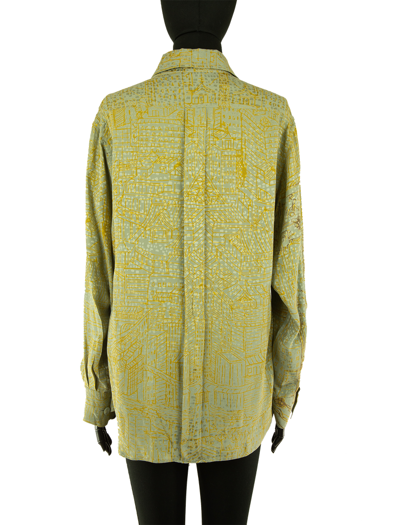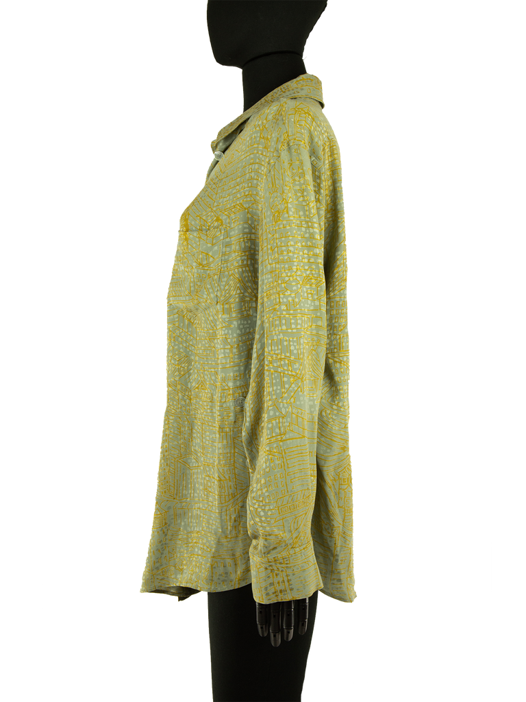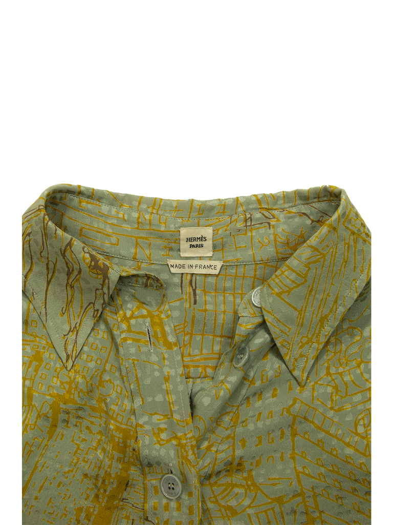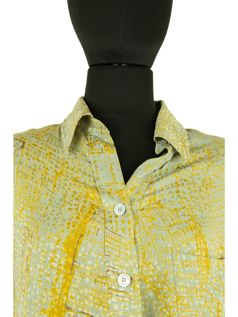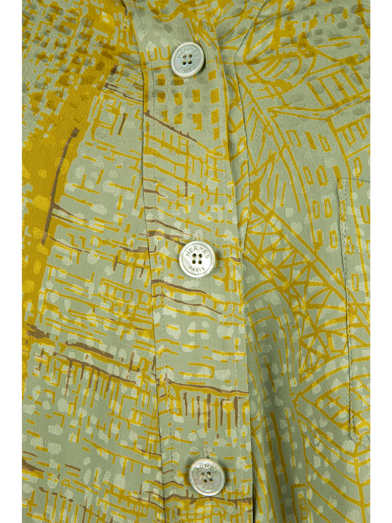 Hermès Pale Green And Mustard Asymmetric Printed Silk Shirt