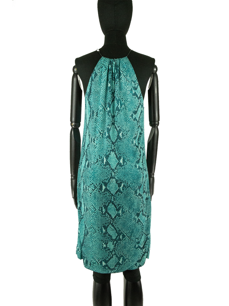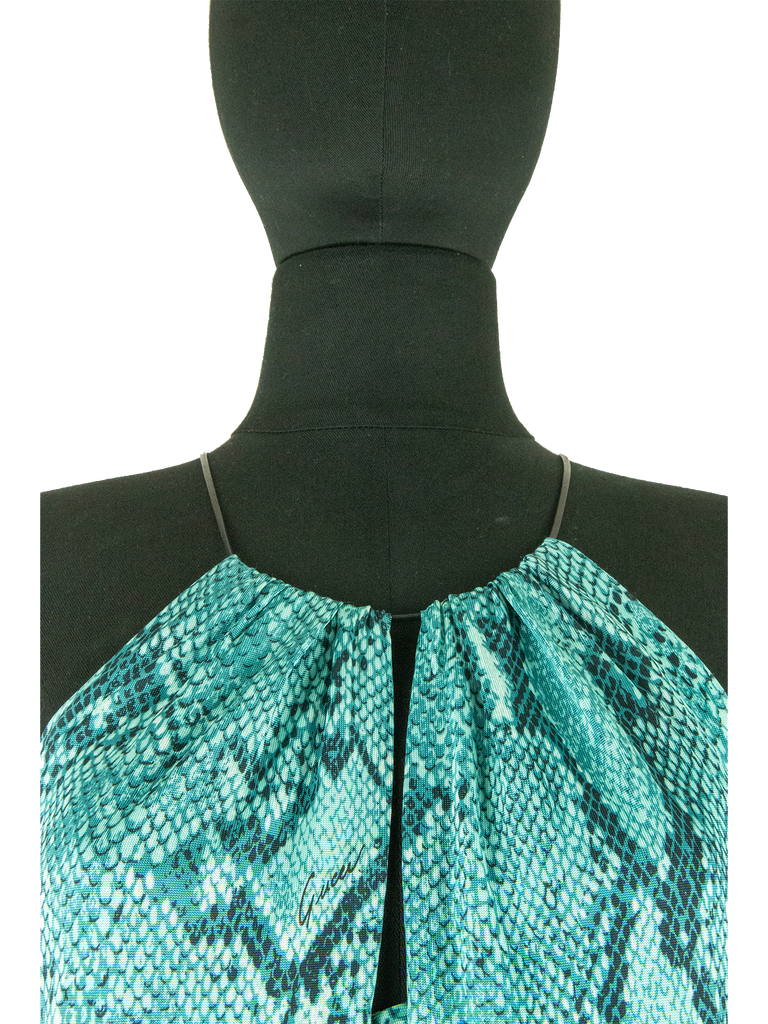 Spring 2000 Gucci by Tom Ford Green, Turquoise And Black Snakeskin Print Dress