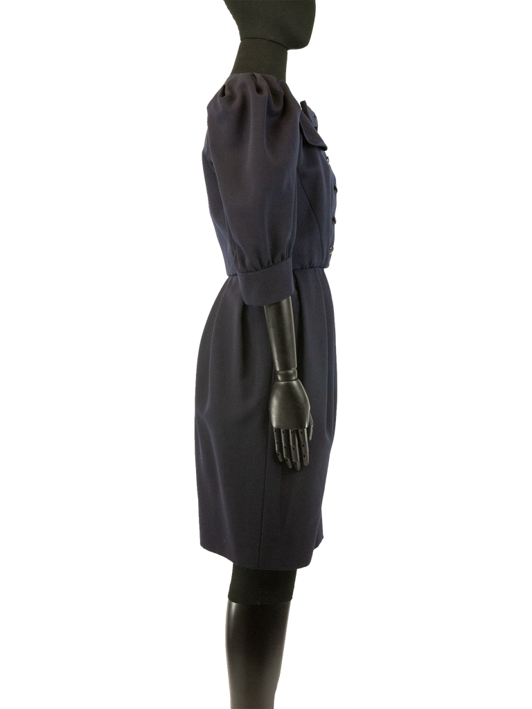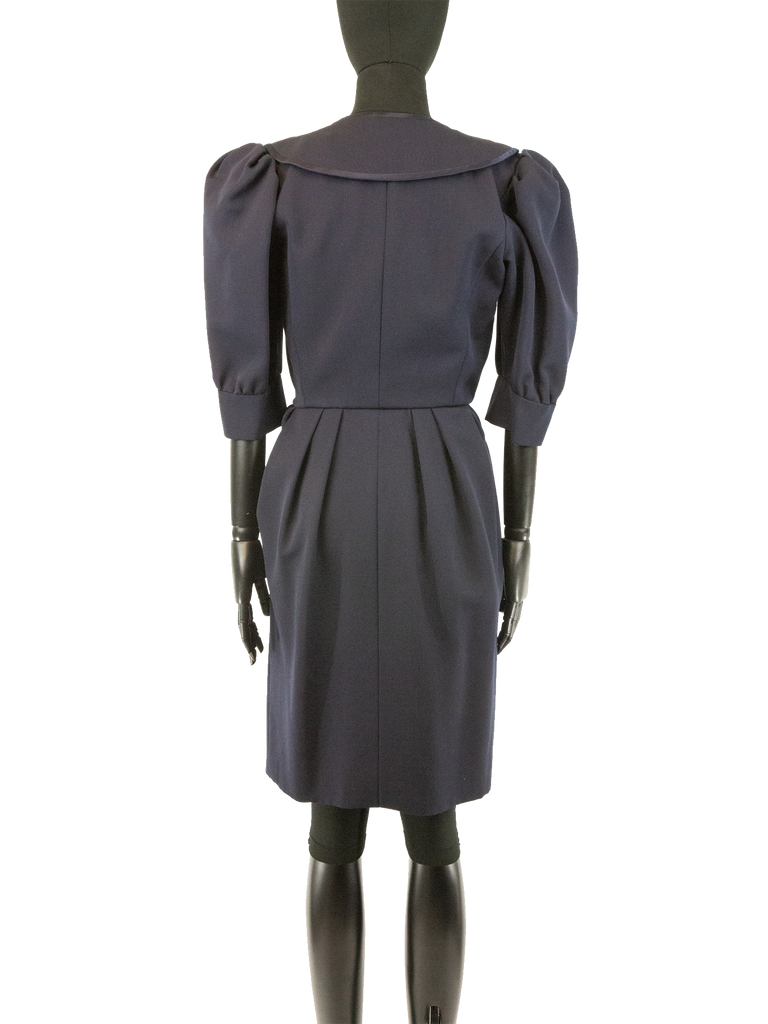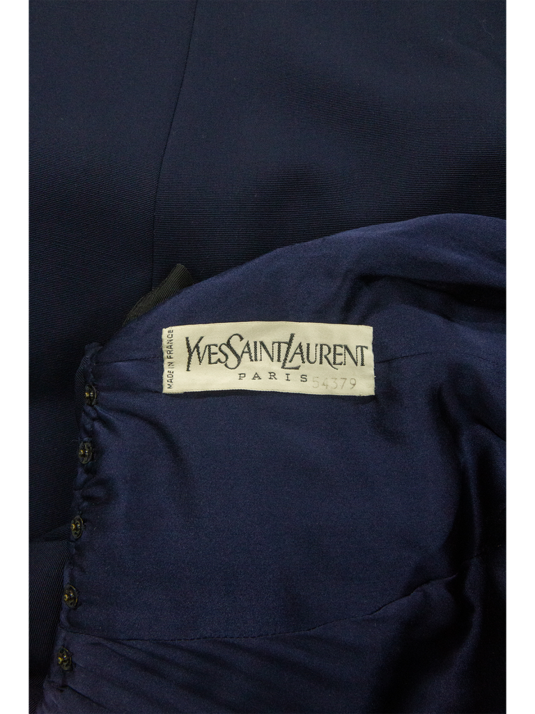 Late 1980s Yves Saint Laurent Couture Navy Dress